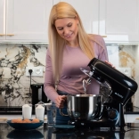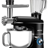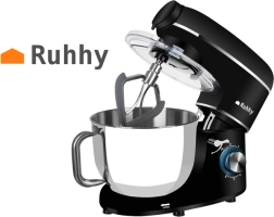 Univerzalni kuhinjski robot 3u1 RUHHY spaja planetarno miješanje, stakleni blender 1,5 l i mlin za meso u jednom snažnom uređaju s snagom 2200 W. Zahvaljujući posudi od nehrđajućeg čelika 6,2 l s ručkom, 6 brzina + PULSE i trima profesionalnim nastavcima lako ćete umutiti, izmiješati i zamijesiti tijesto, te dodatno samljeti meso ili pripremiti smoothie. Dio paketa je zaštita od prskanja i bogata oprema uključujući slastičarsku vrećicu.