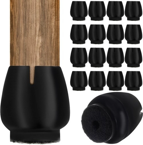 Crne navlake za noge stolica s mekim filcom učinkovito sprječavaju nastanak ogrebotina i tragova na podu te istodobno prigušuju neugodan šum pri pomicanju namještaja. Idealne su za kuhinju, dnevni boravak i terasu, a primjenu nalaze i u hotelima, restoranima i školama.