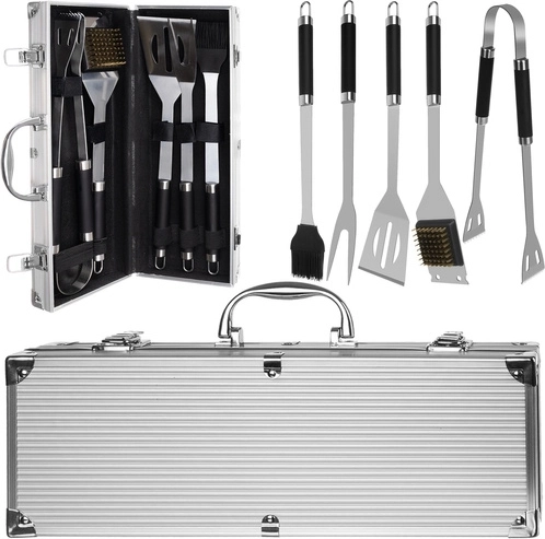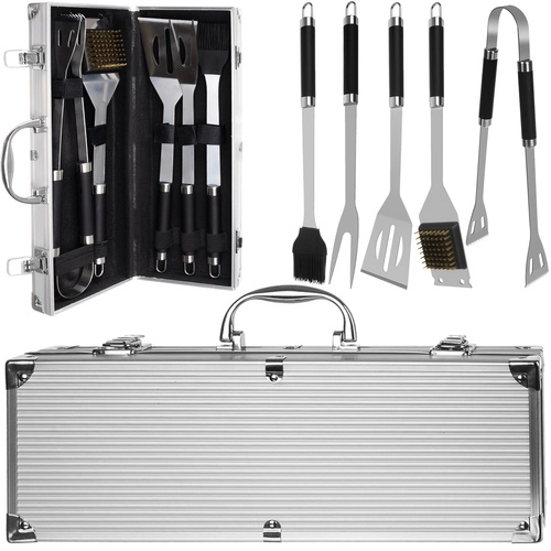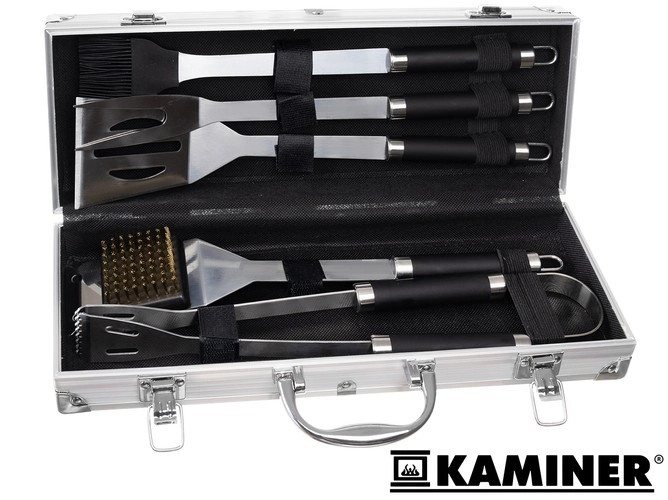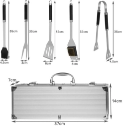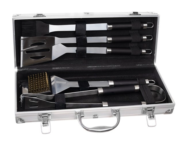 Kvalitetni pribor za roštiljanje olakšava i čini rad na užarenom roštilju i pripremu roštiljanih jela ugodnijima. Set pribora za roštiljanje sadrži čak 5 korisnih elemenata: vilicu, lopaticu, četku i kliješta te četku za čišćenje roštilja. Cijela stvar je zatvorena u čvrstoj torbici. Takav set za roštiljanje može se uspješno koristiti i u kuhinji - na primjer pri pečenju.