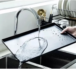 Glatki plastični pladanj skuplja vodu i održava radnu površinu suhom. Nakon pranja ga jednostavno isperete pod mlazom vode – održavanje je pitanje trenutka.