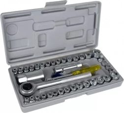 Ovaj sveobuhvatan 40‑dijelni set nasadnih ključeva BIGSTREN pokriva metričke i inčne dimenzije te pruža sve što trebate za montažu, popravke i održavanje. Dijelovi su izrađeni od kvalitetnog čelika i smješteni u kompaktan kofer dimenzija 24,5 × 12,5 × 4 cm, tako da je alat uvijek uredno pri ruci.