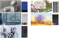 Različite tvrdoće olovaka i štapići za razmazivanje omogućuju nježne prijelaze, realistične teksture i oštre konture. Idealno za studijsko crtanje i ilustraciju.