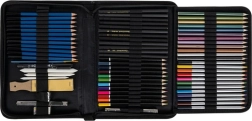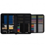 Ovaj univerzalni set za crtanje, slikanje i skiciranje nudi bogat izbor grafitnih i ugljenih olovaka, akvarelnih, metalik i klasičnih bojica, zajedno s praktičnim pomagalima za sjenčanje i detalje. Čvrst tekstilni etui drži sav pribor organiziran i spreman za upotrebu kod kuće i na putu.