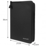 Izdržljiv crni tekstilni etui s patentnim zatvaračem i remenom sve drži uredno na svom mjestu. Elastične trake fiksiraju alate, pa je sadržaj zaštićen i lako prenosiv.