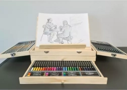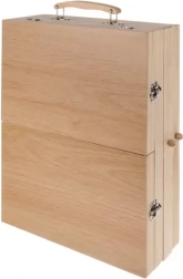 Ovaj univerzalni likovni set idealan je za početnike i napredne. Drveni kovčeg od smrekovine nakon otvaranja pretvara se u stabilan stolni stalak (easel) i stvara prijenosnu slikarsku stanicu. Zahvaljujući pametnim pretincima, svaki alat ima svoje mjesto – od kistova i olovaka do boja i palete.
