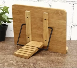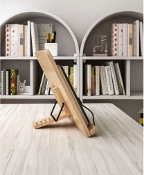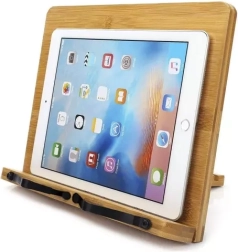 Izrađen od prirodnog bambusa s metalnom konstrukcijom za dug vijek trajanja i stabilnost. Zahvaljujući 6 podesivih položaja lako birate optimalan kut za čitanje recepata, učenje, skiciranje ili gledanje videa.