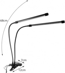 Ova praktična dvoglava grow lampa s 40 LED dioda kombinira crveni (630 nm) i plavi (470 nm) spektar, koji podržava fotosintezu, zakorjenjivanje, rast i cvatnju. Zahvaljujući fleksibilnim guščjim vratovima lako ćete usmjeriti svjetlo točno tamo gdje ga biljke trebaju, a kopčom je pričvrstiti na policu ili stol.