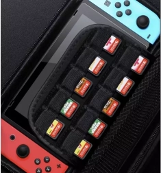 Promišljen unutarnji raspored uključuje mrežasti džep za kabele ili slušalice i utore za 10 uložaka, kako biste svoju igraću biblioteku uvijek imali pri ruci. Kompaktne dimenzije i praktična ručka čine je idealnim izborom za putovanja i svakodnevnu upotrebu.