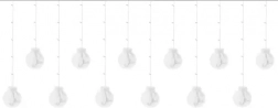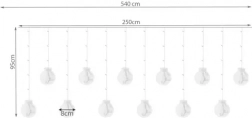 Dizajnerska svjetlosna zavjesa s prozirnim okruglim balonima osvijetlit će interijer i eksterijer ugodnim, čistim svjetlom. Zahvaljujući 108 LED-ica ravnomjerno osvjetljava i veće površine, a zbog niske potrošnje pogodna je za svakodnevno dekorativno osvjetljenje. Integrirani upravljač na kabelu i priloženi daljinski upravljač omogućuju jednostavan odabir režima i svjetline.