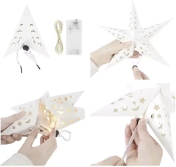 Svijetleća papirnata zvijezda LED je savršen dodatak za vašu blagdansku dekoraciju. Ova zvijezda je izrađena od finog papira sa izrezima u obliku zvjezdica i mjeseca koji, kad se upali, stvaraju čarobnu svjetlosnu igru na zidovima i stropu. Idealna za različite prostorije poput dnevnog boravka, blagovaonice, kuhinje ili spavaće sobe.