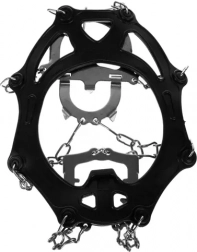 NEHRĐAJUĆI LANCI I OJAČANA PETA– izrađeni od nehrđajućeg čelika. Otporni su na hrđu i koroziju. Dovoljno je razvući elastični obod i navući na potplat cipele. Našizahvatine oštećuju obuću, jer savršeno prianjaju uz cipelu, aojačane petne podloge osiguravaju stabilnost posebno pri spustu.