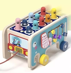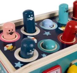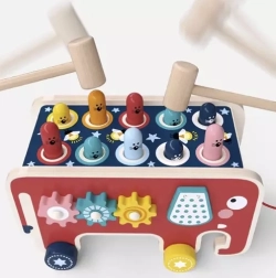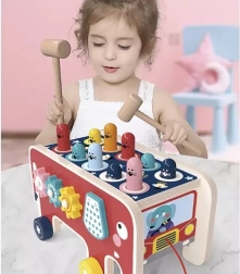 Ova igračka potiče razvoj fine motorike i koncentracije zahvaljujući interaktivnim elementima kao što su čekići i zupčanici.