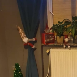 Stvorite kod kuće ugodnu božićnu atmosferu s dekorativnim patuljkom koji ne samo da ukrašava, već i praktično pridržava zavjese. Mekano tijelo, pahuljasta brada i pletena kapa stvaraju topao zimski ugođaj, dok čičak trake na krajevima ruku i nogu omogućuju da se patuljak lako pričvrsti na tekstil ili ogradu.