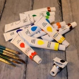 Otkrijte svijet boja i kreativnosti s ovim setom akrilnih boja. Svaka tuba sadrži 12 ml boje, prikladne za uporabu na različitim površinama. Set sadrži: