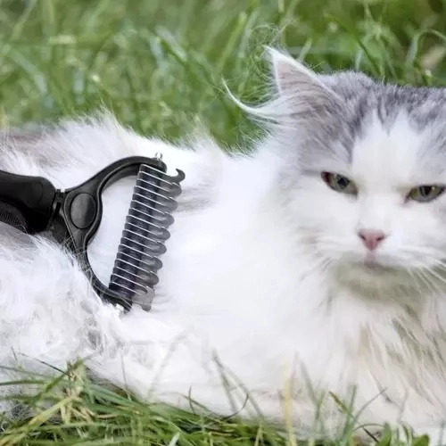 Zaobljeni završeci štite kožu životinje, a unutarnje brušene oštrice lako se nose s čvorovima i zapetljajima – učinkovito raščešljavanje bez rizika iritacije.