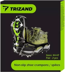 SPECIFIKACIJA - boja: crna / srebrna; materijal: TPE / nehrđajući čelik 304; broj zubaca na 1 mački: 8; veličina: XL 44-47; debljina gume koja drži lance: 0,5 cm; visina zupca: 1 cm; dimenzije futrole: 22 x 18 cm; težina: 267 g; težina s pakiranjem: 359 g.