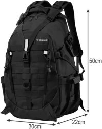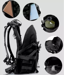 Tražite pouzdan i izdržljiv ruksak koji će se dokazati na turi, na putovanjima i u gradu? Ovaj crni ruksak zapremnine 25 l spaja vojne elemente s odličnom ergonomijom. Ima veliku glavnu komoru s lakim pristupom na patentni zatvarač, unutarnji plosnati džep na čičak te četiri vanjska džepa (2 prednja na patentni zatvarač, 2 bočna) za pregledno slaganje opreme. U kompletu je kabanica s zaštitom IPX1 koja štiti ruksak od kiše.