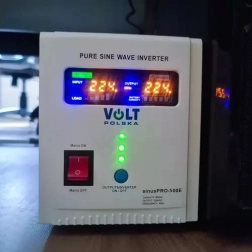 Doživite revolucionarno rješenje s višenamjenskim rezervnim napajanjem Volt Polska sinusPRO-500E. Ovaj uređaj predstavlja idealnu kombinaciju pretvarača DC/AC, UPS-a i automatskog punjača. Njegov šareni zaslon nudi vam trenutni pregled najvažnijih parametara, kao što su mrežni napon, napon akumulatora, stanje napunjenosti ili kapacitet.