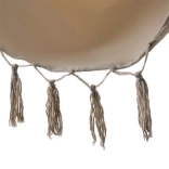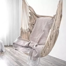 Uživajte u savršenom opuštanju u udobnoj visećoj brazilskoj fotelji u elegantnoj bež boji. Zahvaljujući mješavini 65 % pamuka i 35 % poliestera, tkanina je ugodna na dodir i istovremeno izdržljiva. U pakiranju se nalaze 2 mekana jastuka za maksimalnu udobnost, stabilizacijska drvena prečka za pravilnu raspodjelu težine i čvrsto viseće uže za sigurno pričvršćivanje. Idealno za balkon, terasu i dnevni boravak.