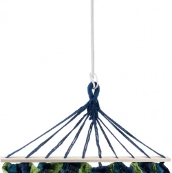 Viseća mreža izrađena je od pamuka s dodatkom poliestera, što osigurava ugodan osjećaj na dodir i visoku trajnost. Pruža odgovarajuću ventilaciju, što je idealno za vruće dane.