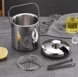 Ova inox kanta za led sa setom dodataka nužna je za ljubitelje rashlađenih napitaka. Zahvaljujući dvostrukoj stijenci led ostaje dulje zamrznut, a kapacitet od 1,3 l omogućuje posluživanje kockica leda na svakom okupljanju. Ergonomska ručka olakšava prenošenje kante s sadržajem.