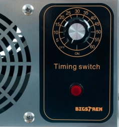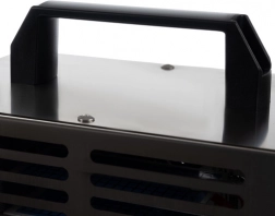 Rukovanje je jednostavno: mehanički timer 1–60 minuta omogućuje podešavanje trajanja ciklusa, a po njegovu isteku uređaj se sam isključuje. Kompaktno metalno kućište, snažan ventilator (do 2800 o/min, 45 CFM) i praktična ručka olakšavaju prenošenje i uporabu u raznim prostorima.