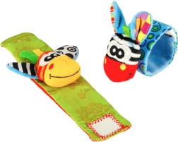 Set sadrži 2 komada – u plavoj i zelenoj varijanti – za raznoliku igru kod kuće i na putu. Proizvod je od sigurnog poliestera i posjeduje CE certifikaciju. Idealan za rano razdoblje kada dijete otkriva svoje ručice i uči ih namjenski koristiti.