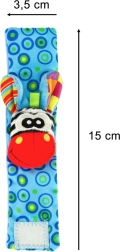 Ugrađena zvečka u glavici životinjice proizvodi ugodan, nenametljiv zvuk koji motivira bebu na pokret i otkrivanje vlastitih ručica.