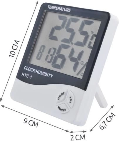 SPECIFIKACIJE - Materijal: ABS plastika; raspon temperature: -10 °C ~ +50 °C (moguća konverzija u Fahrenheite -14 °F ~ +122 °F); mjerenje vlažnosti: 10% ~ 99% RH; izvor napajanja: 1 x AAA baterija (nije uključena u isporuku) ; dimenzije (širina / debljina / visina): 9x2x10 cm; masa: ~100 g