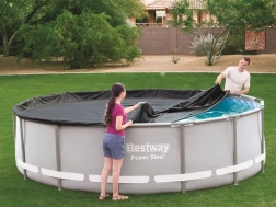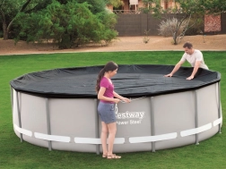 Praktičan i izdržljiv pokrivač za okrugle okvirne bazene promjera 427 cm održava vašu vodu dulje čistom i spremnom za kupanje. Crna cerada povećava toplinsku izolaciju, smanjuje unošenje nečistoća te je zahvaljujući vezicama možete lako i čvrsto pričvrstiti kako je vjetar ne bi otpuhnuo.