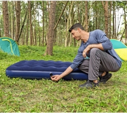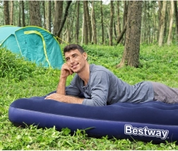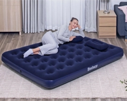 Uživajte u udobnosti bilo gdje – dvostruki madrac BESTWAY Queen dimenzija 203 × 152 × 22 cm idealan je za interijer i za pod šator. Mekana velur površina ugodna je na dodir, dok unutarnja konstrukcija Coil‑Beam oponaša opruge klasičnog madraca i pruža stabilnost te ravnomjernu raspodjelu težine.
