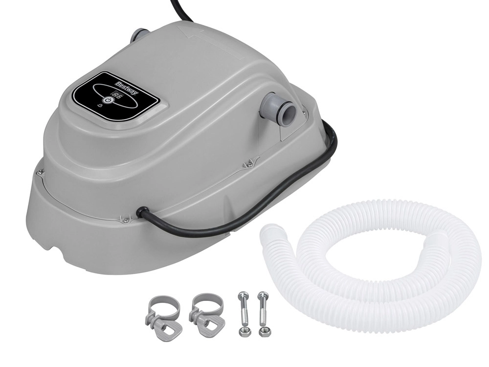 Grijač BESTWAY idealan je izbor za produženje sezone kupanja i povećanje udobnosti u vašem nadzemnom bazenu. Zahvaljujući snazi od 2800 W vodu može brzo zagrijati i održavati ugodnu temperaturu. Digitalna regulacija osigurava precizno podešavanje, dok se ugrađena zaštita od pregrijavanja i RCD (PRCD) zaštita brinu za siguran rad.