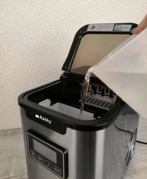 Proizvođač leda Ruhhy savršeno je rješenje za pripremu ledenih pića kod kuće i u uredu. Sa svojom visokom kapacitetom do 12 kg leda dnevno i mogućnošću proizvodnje tri različite veličine kocki (S/M/L), uvijek možete imati kocke leda točno prema svojim potrebama. Dovoljno je napuniti spremnik vodom, odabrati veličinu kocki i uživati u ledenom osvježenju u roku od nekoliko minuta.