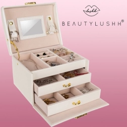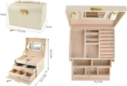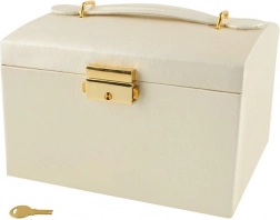 Unutar poklopca pronaći ćete praktično zrcalo i trakice sa zatvaranjem za sigurno pričvršćivanje nakita bez zapetljavanja. Robusna konstrukcija i kvalitetna izrada sa zlatnim akcentima daju kutiji luksuzan izgled, a zaključavanje na ključ osigurava privatnost i sigurnost vaših dragocjenosti.
