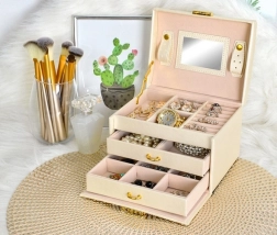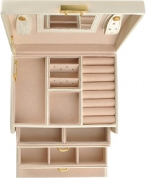 Različite veličine odjeljaka, valjci za prstenje i dvije ladice drže sve na svom mjestu – od naušnica do satova.