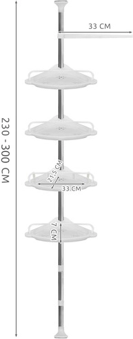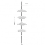 Maksimizirajte prostor za odlaganje u tušu uz kutnu teleskopsku policu RUHHY. Zahvaljujući pametnom razupornom sustavu instalirate je bez alata i bušenja – idealno za stanove u najmu i renovirane kupaonice. Četiri prostrane police s povišenim rubom sigurno drže šampone, sapune i spužvice, dok drenažni otvori ubrzavaju otjecanje vode i olakšavaju čišćenje.
