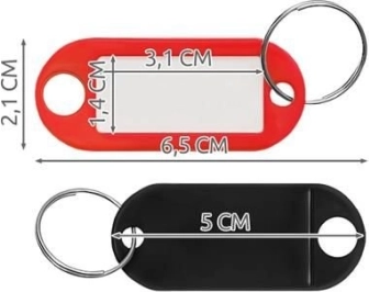 Set sadrži identifikatore za ključeve u miksu živih boja, što omogućuje brzo i lako razlikovanje ključeva prema boji. Zahvaljujući mogućnosti pisanja na bijele kartice zaštićene folijom imate sigurnost da će vaš opis ostati zaštićen od trošenja ili oštećenja. Čvrsti metalni prsten omogućuje praktično pričvršćivanje na ključeve ili drugu opremu.