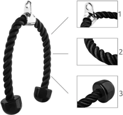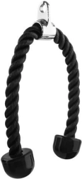 Naše uže za tricepse idealno je za širok raspon vježbi usmjerenih na ramena, prsa, leđa, tricepse i trbušne mišiće. Zahvaljujući gusto pletenim najlonskim vlaknima ima maksimalnu nosivost do 200 kg, što osigurava njegovu izdržljivost i dug vijek trajanja.
