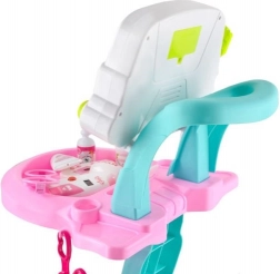 Ovaj liječnički set donosi djeci sve što im treba za zabavnu i poučnu igru doktora. Kolica s dvjema razinama na 4 kotača omogućuju da su svi instrumenti pri ruci i da se lako prevoze između prostorija. Tu je i interaktivni monitor s EKG-om koji proizvodi zvukove i pali šarene LED diode – mali liječnici tako doživljavaju realistične trenutke ordinacije.