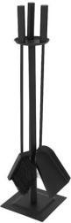 Elegantni set kaminskog pribora 4u1 za jednostavno rukovanje kaminom, peći, roštiljem i ložištem. Sadrži žarač, lopaticu, četku i stabilan stalak s protukliznim nožicama. Izdržljiva izvedba od nehrđajućeg čelika s mat crnom površinom skriva sitne ogrebotine i nečistoće te prostoru daje čist, moderan izgled.