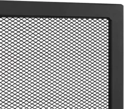 Fina čelična mreža zadržava iskre i nečistoće, a mat crna izvedba bolje skriva sitne ogrebotine i ostavlja elegantan dojam.