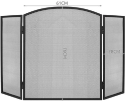 Elegantni trodijelni paravan za kamin s finom čeličnom mrežom pouzdano štiti pod i okolinu od užarenih iskri i žeravice. Zahvaljujući dimenzijama 118 × 76 cm nudi visoku razinu sigurnosti, mat crna izvedba odlično se uklapa u interijer, a sklopiva konstrukcija omogućuje slobodno podešavanje prema širini i obliku kamina. Izdržljiva čelična mreža propušta toplinu i pogled na plamen, ali zadržava nečistoće i žar.