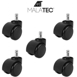 Kotači su dodatno tihi i neklizajući, što omogućuje potpunu kontrolu nad smjerom i intenzitetom kretanja. U setu je 5 komada, što omogućuje potpunu zamjenu na bilo kojoj uredskoj stolici. Montaža je jednostavna i brza na klik.
