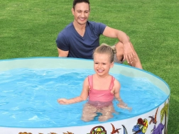 Dječji bazen Bestway sa šarenim dinosaurima odličan je izbor za vruće dane. Zahvaljujući samorazvijajućoj konstrukciji, dovoljno je bazen jednostavno rasklopiti i napuniti vodom – u tren oka spreman je za vodene radosti. Izdržljiv PVC materijal osigurava dug vijek trajanja i bezbrižno korištenje.