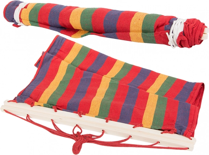 Ova udobna viseća mreža s drvenim razupornim letvama održava ležnu površinu stalno otvorenom, pa je ulaženje i izlaženje vrlo jednostavno. Čvrsta tkanina od debelog pamuka s dodatkom poliestera izdržljiva je, prozračna i ugodna za svakodnevni odmor. Zahvaljujući nosivosti od 150 kg pruža sigurnost i stabilnost za opuštanje na otvorenom i u interijeru.