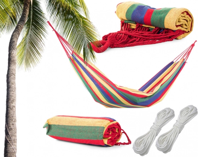 Ova prugasta viseća mreža unijet će trenutni mir i udobnost u vaš vrt ili na balkon. Izdržljiva, prozračna tkanina i snažna pletena užad osiguravaju sigurno i ugodno ljuljanje za jednu ili dvije osobe. Nakon rolanja zauzima minimalno mjesta, a zahvaljujući priloženim užadima lako je objesite između drveća ili na stalak.