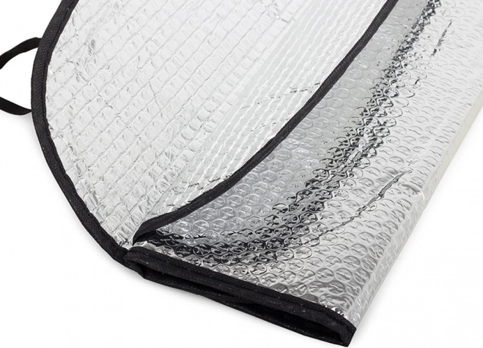 Reflektirajuće sjenilo za vjetrobransko staklo s mjehurićastom izolacijom značajno smanjuje zagrijavanje unutrašnjosti i sprječava blijeđenje presvlaka te oštećenje elektronike od sunca. Zahvaljujući obostrano reflektirajućoj površini pouzdano djeluje ljeti protiv vrućine, a zimi pomaže spriječiti zaleđivanje stakla.