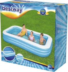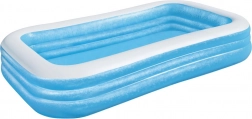 Nafukavajući bazen Deluxe Blue donosi radost i osvježenje u vrućim danima. Njegova konstrukcija je čvrsta i stabilna, što omogućava sigurnu zabavu za djecu i odrasle. Zahvaljujući izdržljivom PVC materijalu, bazen je otporan na pucanje i dugo traje. S kapacitetom od 1161 litru dovoljno je prostran za cijelu obitelj. U slučaju oštećenja, dio pakiranja uključuje set za popravak.