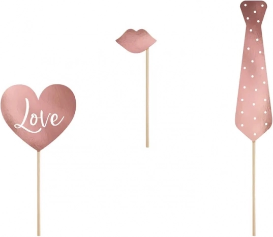 Stilizan set svadbenih foto rekvizita u bijeloj i ružičastoj boji za originalni fotokutak. Sadrži miks oblika i motiva koji će razvedriti svaku fotografiju. Idealno za vjenčanja, zaruke ili djevojačke/momačke zabave. 12 komada, miks uzoraka, jednostavno sastavljanje.