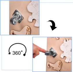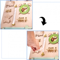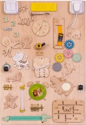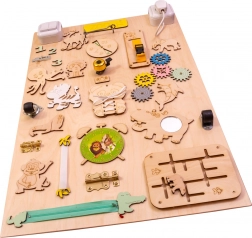 Ploča sadrži šarenolika zupčanika, zvona, brave i druge interaktivne elemente koji podržavaju razvoj fine motorike.